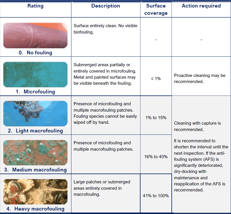 - Maintain a clean hull – where ‘clean’ means no biofouling apart from a slime layer (microfouling). This corresponds to a fouling rating number of 1 or lower as defined by Annex J of the regulation.